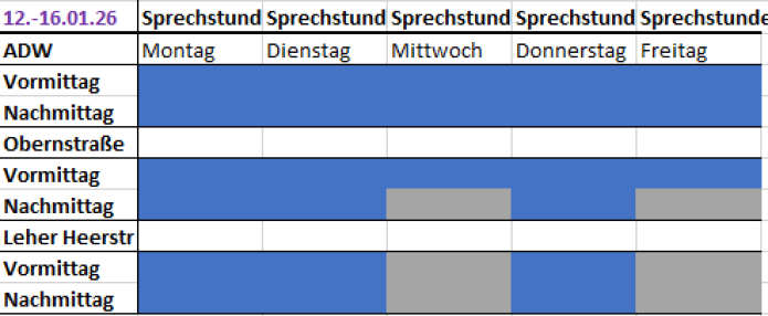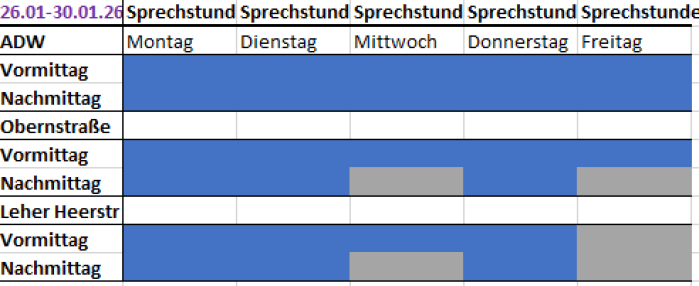 08:00 – 8:30 Uhr und nach Vereinbarung |